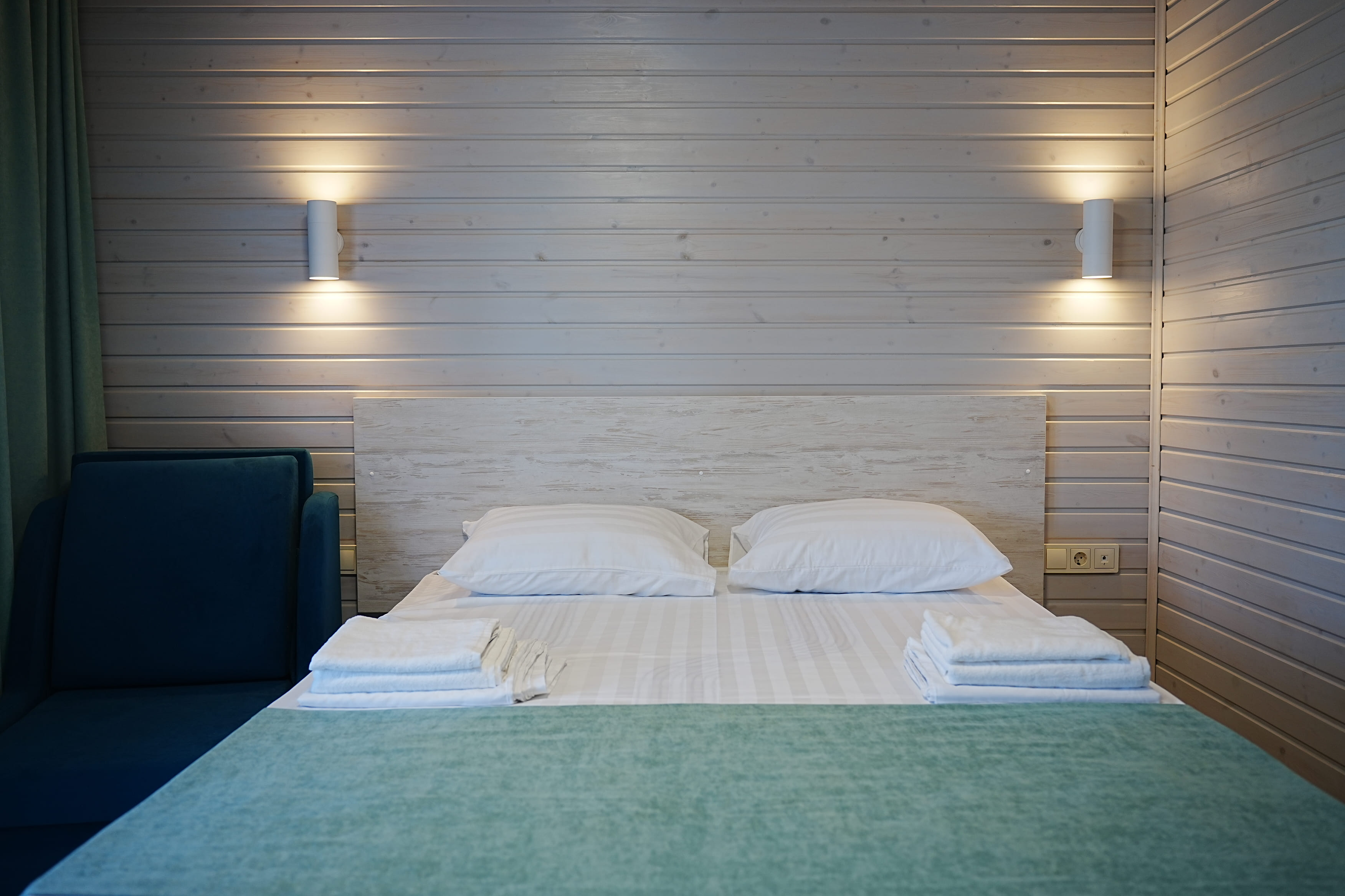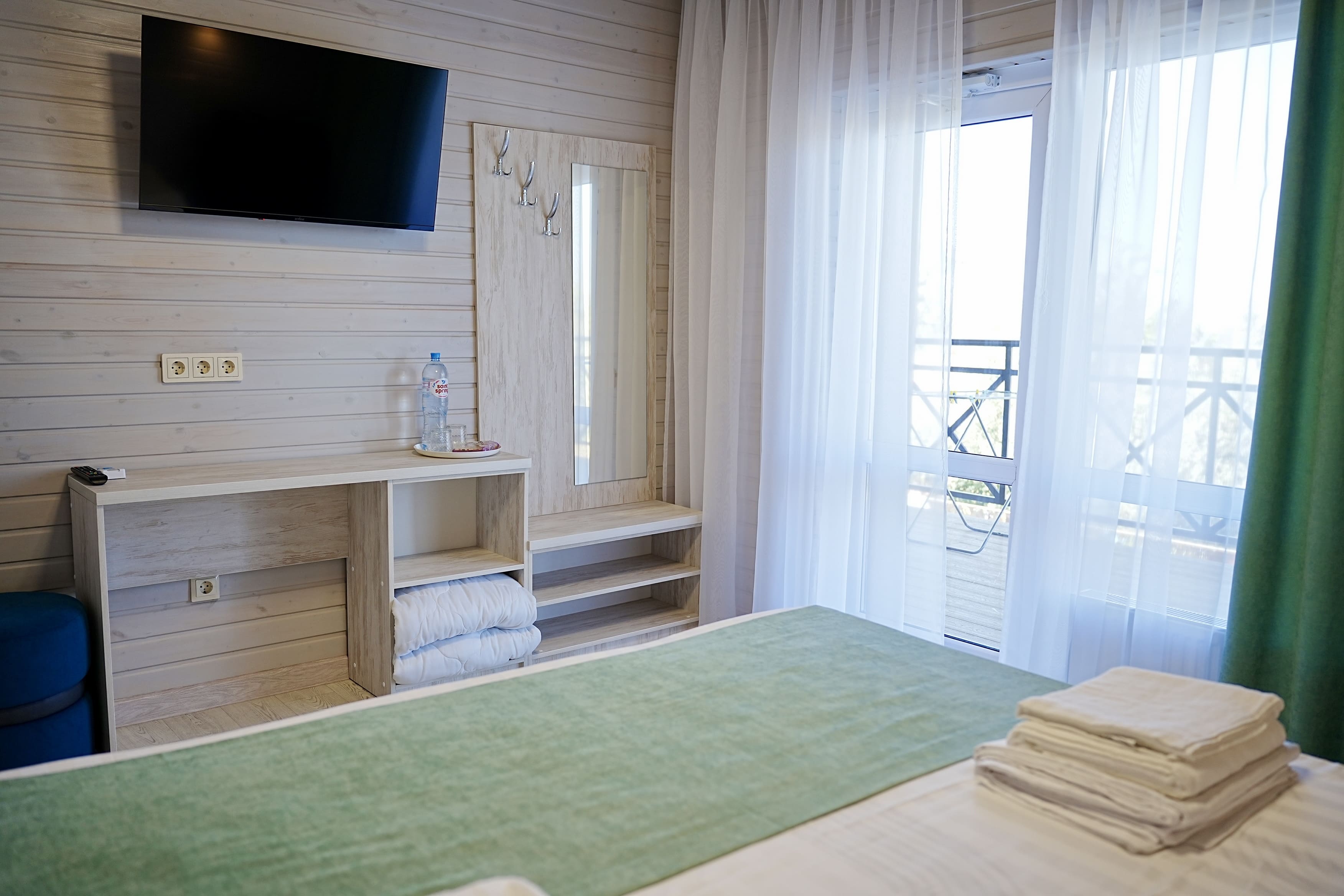 Снять жилье у моря в ПРО Пересыпь: комфорт для троих гостей Стандартный номер – это идеальный выбор для компании из трех человек. Просторный, светлый и стильно оформленный, он создает атмосферу уюта и расслабления, которая так необходима для полноценного отдыха. Удобство и комфорт В номере вас встретит удобная двуспальная кровать которая обеспечит комфортный сон после насыщенного дня. Для третьего гостя предусмотрено раскладное кресло — практичное и удобное решение. Лаконичный дизайн интерьера, выполненный в спокойных тонах, создает ощущение гармонии и помогает полностью отключиться от городской суеты. Из панорамного окна номера открывается вид на бассейн. Представьте: утром вы просыпаетесь под мягкие лучи солнца, а вечером наслаждаетесь закатом, наблюдая за игрой света на воде. Это ли не идеальное начало и завершение дня? Что есть в номере? Стандартный номер оснащен всем необходимым для комфортного пребывания: Москитная сетка — чтобы ваш отдых не омрачали насекомые; Душ — свежесть и бодрость в любое время суток; Телевизор — для вечернего просмотра любимых фильмов или сериалов; Бесплатный Wi-Fi — чтобы оставаться на связи с близкими или делиться впечатлениями в соцсетях; Мини-бар — чтобы утолить жажду или перекусить после пляжа. Кроме того, в вашем распоряжении будут: Мягкие полотенца — для комфорта после душа или посещения бассейна; Фен — для тех, кто ценит удобство и экономию времени. Почему стоит выбрать стандартный номер? Отличное решение для тех, кто ценит комфорт и практичность по хорошей цене. Здесь вы найдете все, что нужно для отдыха, и сможете насладиться временем, проведенным у моря. Отдых в Пересыпи Пересыпь — это место, где можно отдохнуть от городской суеты, насладиться теплым морем и почувствовать себя частью природы. Забронируйте стандартный номер уже сегодня и подарите себе незабываемый отдых в Пересыпи!