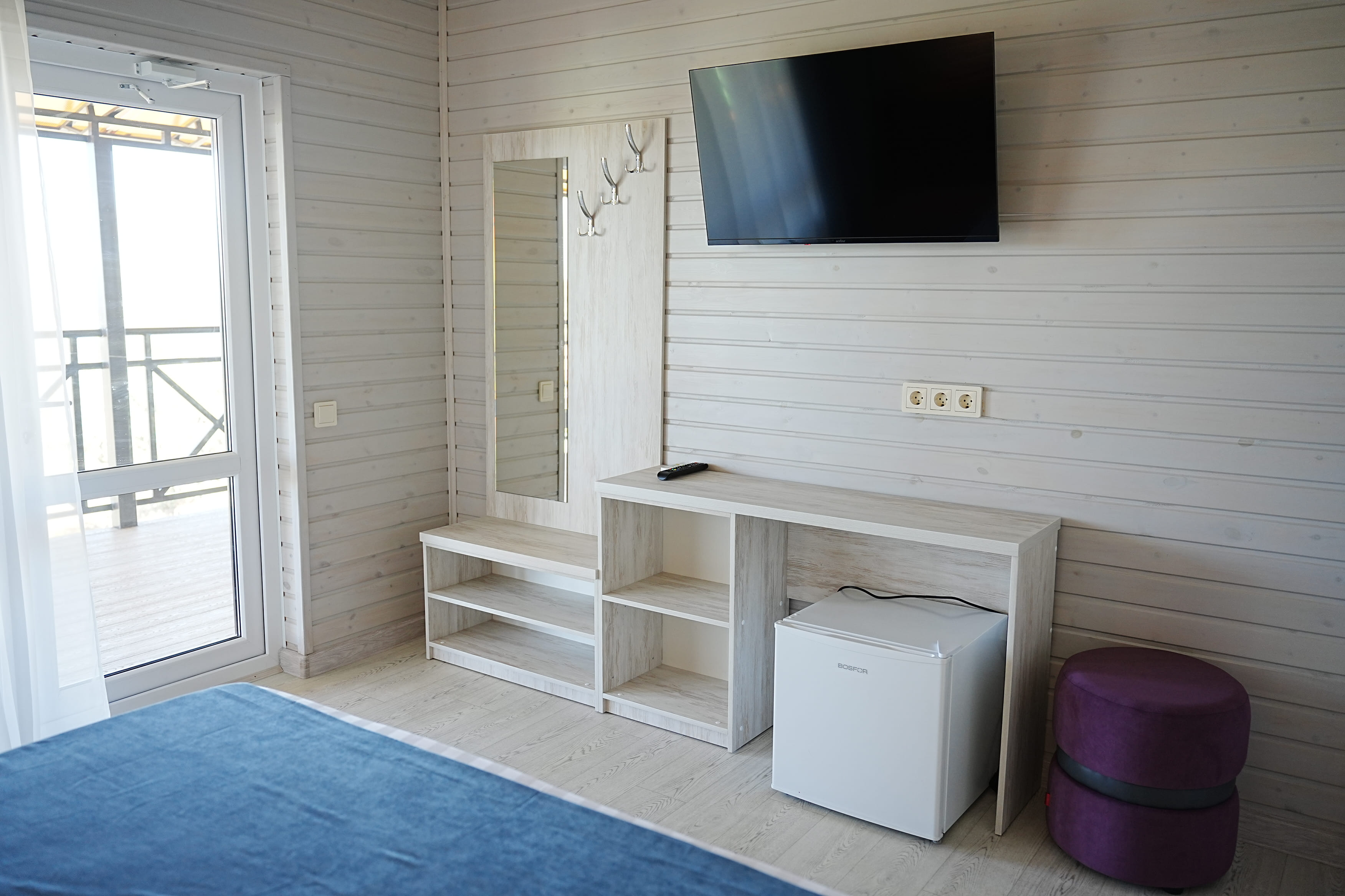 Аренда жилья у моря в ПРО Пересыпь: комфорт для троих гостей Стандартный номер на втором этаже – отличный вариант для компании из трех человек. Просторный, светлый и стильно оформленный, он создает уютную и расслабляющую атмосферу, идеальную для полноценного отдыха. Удобство и комфорт В номере вас ждет удобная двуспальная кровать , обеспечивающая комфортный сон после активного дня. Для третьего гостя предусмотрено раскладное кресло – практичное и удобное решение. Интерьер выполнен в лаконичном стиле с использованием спокойных тонов, что создает гармонию и помогает отвлечься от городской суеты. Из панорамного окна открывается вид на деревья. Представьте: утром вы просыпаетесь под мягкие солнечные лучи , а вечером наслаждаетесь закатом, наблюдая за игрой света на кронах деревьев. Разве это не идеальное начало и завершение дня? Что есть в номере? Стандартный номер оборудован всем необходимым для комфортного проживания: Москитная сетка – чтобы насекомые не мешали вашему отдыху; Душ – для свежести и бодрости в любое время; Телевизор – для просмотра любимых фильмов или сериалов вечером; Бесплатный Wi-Fi – чтобы оставаться на связи с близкими или делиться впечатлениями в соцсетях; Мини-бар – для утоления жажды или легкого перекуса после пляжа. Кроме того, в вашем распоряжении: Мягкие полотенца – для комфорта после душа или бассейна; Фен – для тех, кто ценит удобство и экономию времени. Почему стоит выбрать стандартный номер? Это отличное решение для тех, кто ценит комфорт и практичность по доступной цене. Здесь есть все необходимое для отдыха, чтобы насладиться временем, проведенным у моря. Отдых в Пересыпи Пересыпь – это место, где можно отдохнуть от городской суеты, насладиться теплым морем и почувствовать единение с природой. Забронируйте стандартный номер уже сегодня и подарите себе незабываемый отдых в Пересыпи!